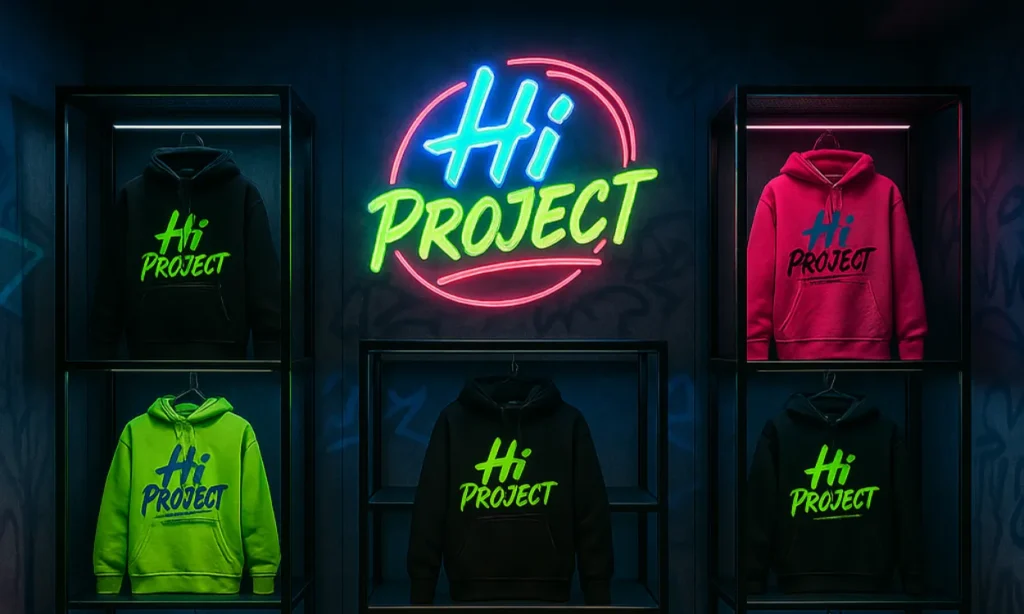 Hi Project nació con una idea clara: ser una marca de ropa urbana con personalidad propia. Me encargué de construir su identidad desde cero, trabajando el naming, la dirección visual y el diseño gráfico con un enfoque muy marcado al estilo streetwear. Todo debía transmitir autenticidad, frescura y coherencia visual.
